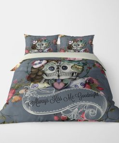 Hi there! You are looking at our Always Kiss Me Goodnight Skull Bedding Set. These styles are unique, made with love, and they are perfect accessories for skull lovers. All of our Quilts are custom-made-to-order and handcrafted to the highest quality standards.