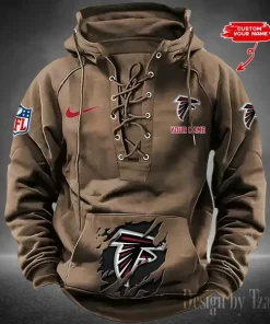 Atlanta Falcons Lace-Up Cross V-Neck Drawstring Hoodie