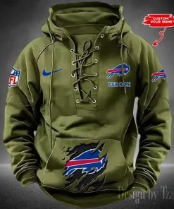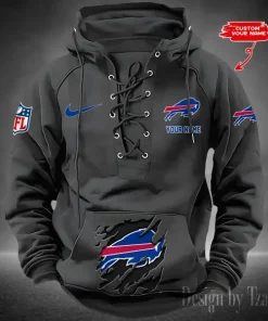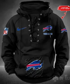 Buffalo Bills Lace-Up Cross V-Neck Drawstring Hoodie