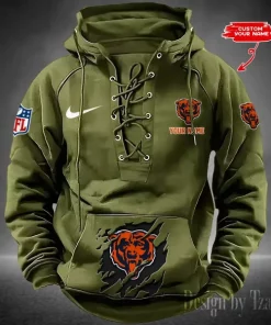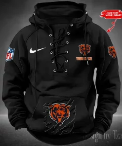 Chicago Bears Lace-Up Cross V-Neck Drawstring Hoodie
