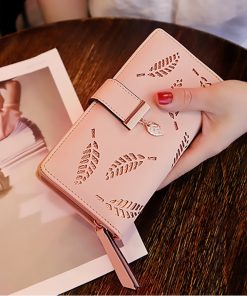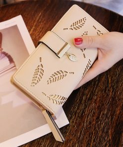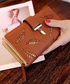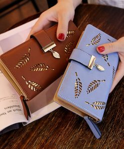 - 2020 Women Wallet Purse Female Long Wall: Long Wallet Gold Hollow Leaves