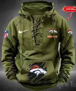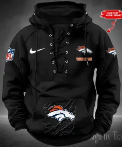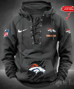 Denver Broncos Lace-Up Cross V-Neck Drawstring Hoodie