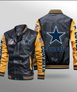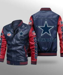 - This llight-weight Cowboys leather jacket with a high collar, full-zip front, and side seam pockets completes a stylish look for cool weather.