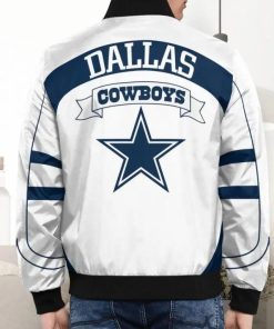 - This llight-weight Dallas Cowboys bomber jacket with a high collar, full-zip front, and side seam pockets completes a stylish look for cool weather.
