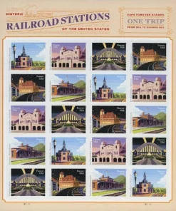 Forever Stamps Railroad Stations 2023 of 100 PCS/Roll