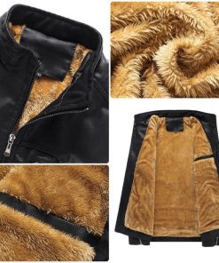 - Fashion stand collar design leather bomber jacket helps you stay away from the cold. A soft fleece inner jacket keeps you warm in cold weather. In addition, the full zip-up closure with 2 slant pockets offers great storage and necessities secure for many items like phones, changes, cards, or keys. The exquisite cuff and hem binding design make this outwear jacket more fashionable and classic.
