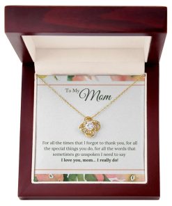 ✓Sentimental Value: I Love You Mom I Really Do Love Knot Necklace comes with a thoughtfully written message card: “For all the times that I forgot to say “thank you”, For all the special, little things you do, For all the words that sometimes go unspoken, I need to say, I love you mom…I do”