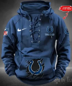 Indianapolis Colts Lace-Up Cross V-Neck Drawstring Hoodie