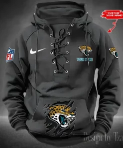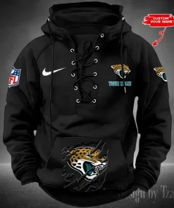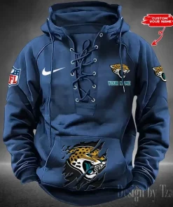 Jacksonville Jaguars Lace-Up Cross V-Neck Drawstring Hoodie