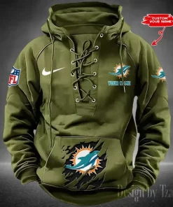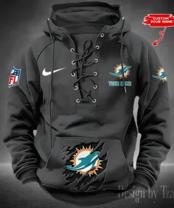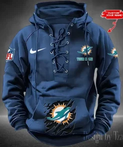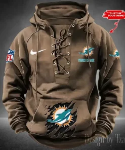 Miami Dolphins Lace-Up Cross V-Neck Drawstring Hoodie
