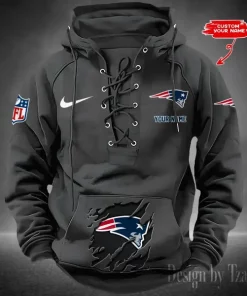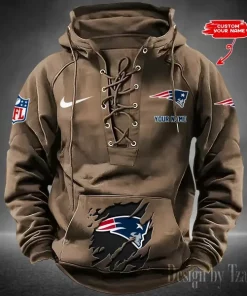 New England Patriots Lace-Up Cross V-Neck Drawstring Hoodie