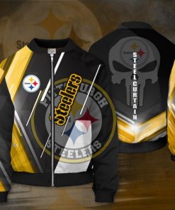Hi there! You are looking at our Pittsburgh Steelers bomber jackets. These styles are unique, made with love, and they are perfect accessories for your outfit. The Pittsburgh Steelers logo on the jackets makes them a perfect item for any Steelers fan.