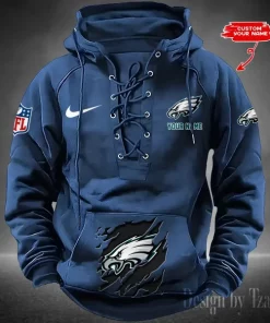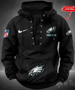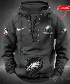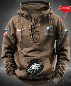 Philadelphia Eagles Lace-Up Cross V-Neck Drawstring Hoodie