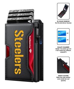 Pittsburgh Steelers – Football RFID Blocking Pop Up Card Holder, Fashion Card Case Wallet