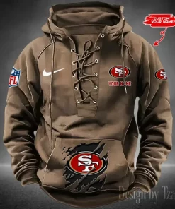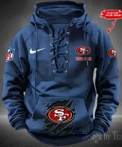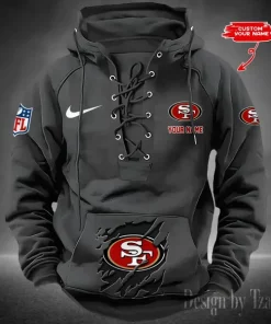 San Francisco 49ers Lace-Up Cross V-Neck Drawstring Hoodie