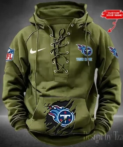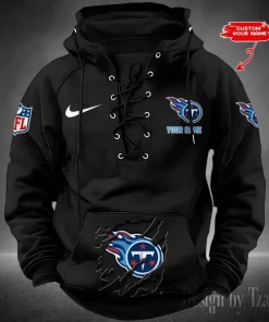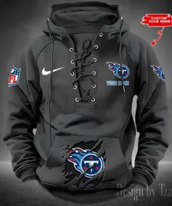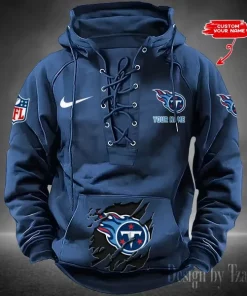 Tennessee Titans Lace-Up Cross V-Neck Drawstring Hoodie