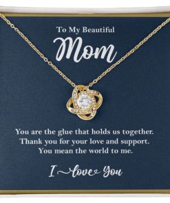 ✓Sentimental Value: You Are the Glue Necklace comes with a funny written message card: “To my beautiful mom You are the glue that holds us together. Thank you for your love and support. You mean the world to me. I love you.”